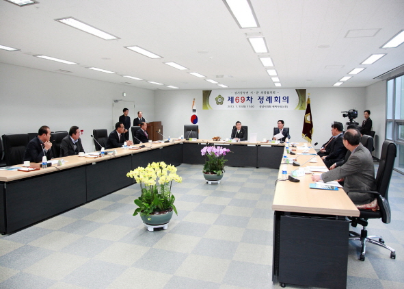 성남시를 비롯한 10개 시·군의회 의장으로 구성된 경기동부권 시·군의장협의회 (회장 여주군의회의장 김규창)는 제69차 정례회의를 10일 오전 성남시의회 4층 세마니실에서 개최하고 시·군 의회 상호간의 협력과 우의를 다졌다.