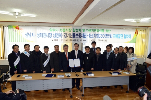 이날 협약식 참여기관은 성남시, 경기신용보증재단, 성남시CEO연합회, 상대원전통시장 상인회이며, 협약식 후에는 자금지원 확대를 위한 현장상담과 가두 캠페인이 이어졌다.