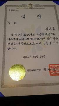배 주무관은 이 아이디어로 행정자치부 주관 ‘2014년도 지방세 체납정리 세무조사 우수사례 발표대회’에 경기도 대표로 나가 상금 3,000만원과 장려상을 받았다.