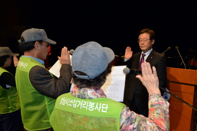 성남시는 3월 11일 오후 2시 성남아트센터 오페라하우스에서 사업 참여 어르신을 비롯한 이재명 성남시장, 박권종 성남시의회 의장 등이 참석한 가운데 ‘어르신 소일거리 봉사단 발대식’을 했다.