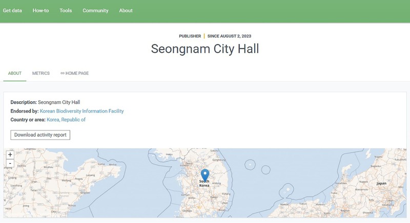 성남시는 지난 2023년 6월 2일 국립중앙과학관(GBIF 한국사무소)과 ‘생물다양성 시민과학 활성화를 위한 업무협약’을 체결한 이후 시민과 함께 조사한 식물·곤충·조류·어류 등 지역 자연자원 자료를 GBIF에 지속적으로 등록해 왔다.